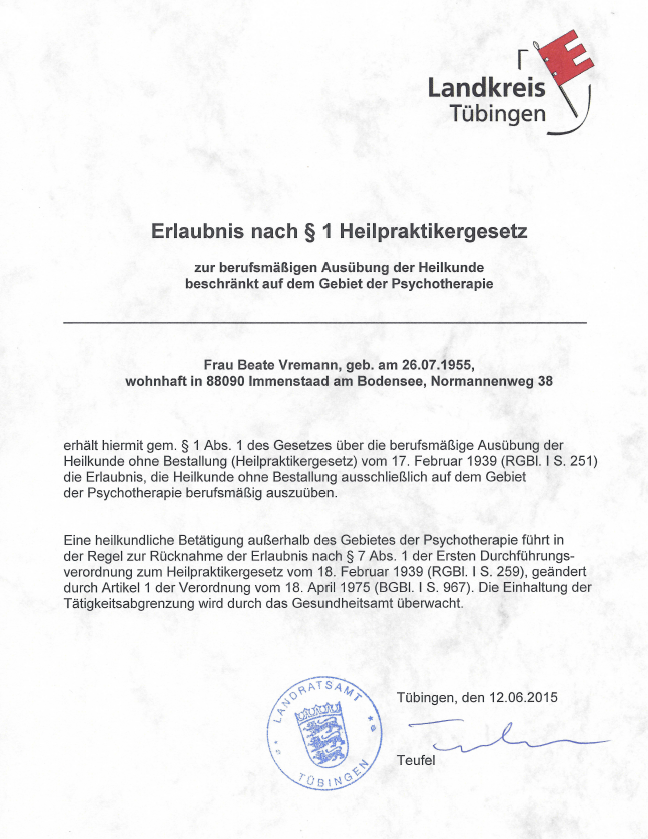 Erlaubnis nach §1 Heilpraktikergesetz